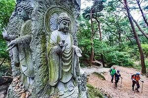 부안 내소사 전나무숲길&관음봉내소사 전나무숲길은 내소사 일주문에서 사천왕문까지 600m가량 이어지는 숲길이다. 150여 년 전 임진왜란 때 피해를 입은 사찰을 복구하면서 삭막한 사찰 입구에 생기를 더하기 위해 심은 것이 지금에 이른다고 한다. 700여 그루의 약 30m 높이 전나무가 하늘 높이 솟아오른 시원한 모습이 인정받아 ‘한국의 아름다운 길 100선’, 제7회 아름다운 숲 전국대회에서 ‘함께 나누고픈 숲길’로 선정, 우수상을 받기도 할 만큼 수려한 자태를 뽐낸다. 아이, 연인, 가족과 여유롭게 걷기 좋아 가벼운 등산을 하거나