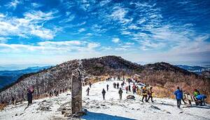 해발 1,000m가 넘는 강원도 고산지대의 2월은 겨울이 아주 깊이 들어가 있다. 물론 설악산, 오대산 등 명산들이야 두말할 나위 없겠지만 강원도 남부 지역의 해발 1,500m가 넘는 함백산과 태백산도 2월은 겨울이 아주 맛있게 익어 있는 시기다.깊은 겨울 태백산의 백미는 흰 눈꽃 산행이다. 강원 남부 내륙에 위치해 있어 2월이면 습기를 머금은 눈들이 자주 내리고, 여기에 영하의 찬바람이 불어 나뭇가지에 상고대가 잘 달라붙는다.유일사 주차장을 통해 정상으로 오르는 코스를 택하면 해발 1,500m가 넘지만 크게 힘들이지 않게 장군봉