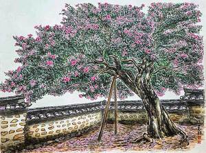 이번 작품은 무궁화나무로는 유일하게 천연기념물(제520호)로 지정돼 있는 강원도 강릉시 사천면 방동리의 강릉박씨 종중재실에 위치한 무궁화나무다. 무궁화나무 수명은 40~50년이 일반적인데 방동리 나무는 수령이 120살 이상으로 추정되며 상태도 매우 양호하다. 높이 약 4m, 몸통둘레 146cm로 국내 무궁화나무 가운데 크기가 가장 큰 것으로 알려져 있다. 꽃의 색상은 분홍색으로 가운데 꽃술 부분이 짙은 붉은색인 ‘홍단심계’로 순수재래종의 원형이다.강릉박씨 종중재실은 강릉박씨 중 시조인 삼가 박수량 三可 朴遂良(1475~1546)의