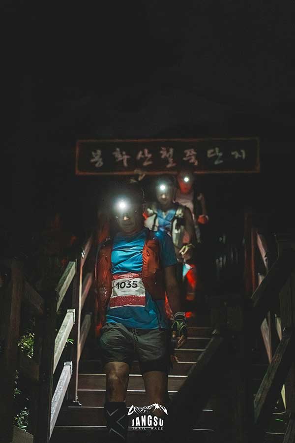 목포 참가자와 둘이서 다시 봉화산 정상으로 되돌아왔다. CP6, 65km 지점이었다. 그는 여기서부터 약 3시간 동안 기억을 잃었다. 그동안 그는 고도 1,000여 m를 높였다. 다음 CP7까지 15km 거리를 통과하는 데 6시간 걸렸다. 밤을 꼬박 새며 산을 탄 것이다. 가물거리는 기억을 더듬어보면, 정신이 몽롱한 상태에서 앞사람의 배낭과 다리만 보였다. CP7에 도착 후 40분간 누워서 잠을 잤다. 일어나니 또 몸이 살짝 되살아났다. 골인지점까지 20km 남은 지점이었다. 포기하면 여길 또 와야 한다는 생각이 들어 끔찍했다. 계속 가기로 했다.